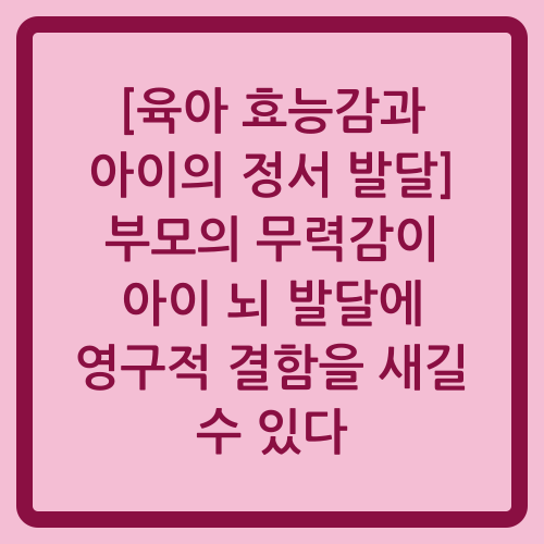 부모가 자신의 양육 능력에 대한 부정적인 인식을 가질 때, 이는 아이와의 상호작용 방식에 직접적인 영향을 미친다. 불안정한 애착 형성은 아이의 스트레스 반응 시스템, 즉 시상하부-뇌하수체-부신 축(HPA axis)의 조절 능력을 저해한다. 이는 영유아기 뇌 발달의 민감기에 특히 치명적이며, 전두엽 피질의 구조적·기능적 변화를 유발할 수 있다.