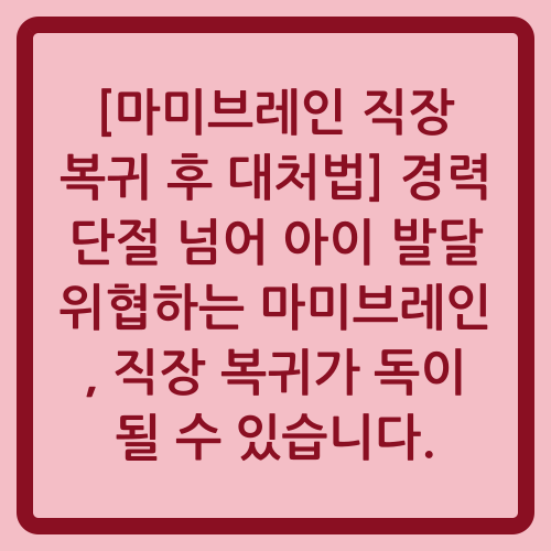 [마미브레인 직장 복귀 후 대처법] 경력 단절 넘어 아이 발달 위협하는 마미브레인, 직장 복귀가 독이 될 수 있습니다.