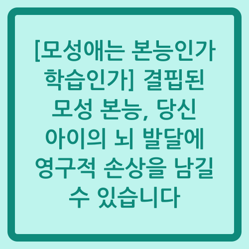 [모성애는 본능인가 학습인가] 결핍된 모성 본능, 당신 아이의 뇌 발달에 영구적 손상을 남길 수 있습니다