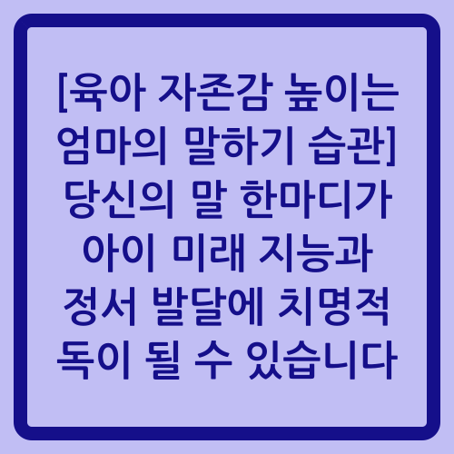 [육아 자존감 높이는 엄마의 말하기 습관] 당신의 말 한마디가 아이 미래 지능과 정서 발달에 치명적 독이 될 수 있습니다
