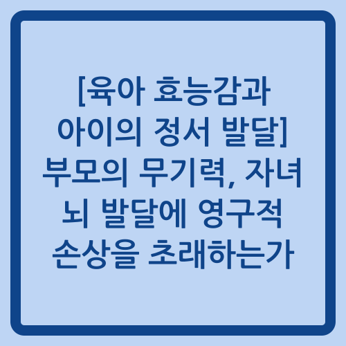 [육아 효능감과 아이의 정서 발달] 부모의 무기력, 자녀 뇌 발달에 영구적 손상을 초래하는가